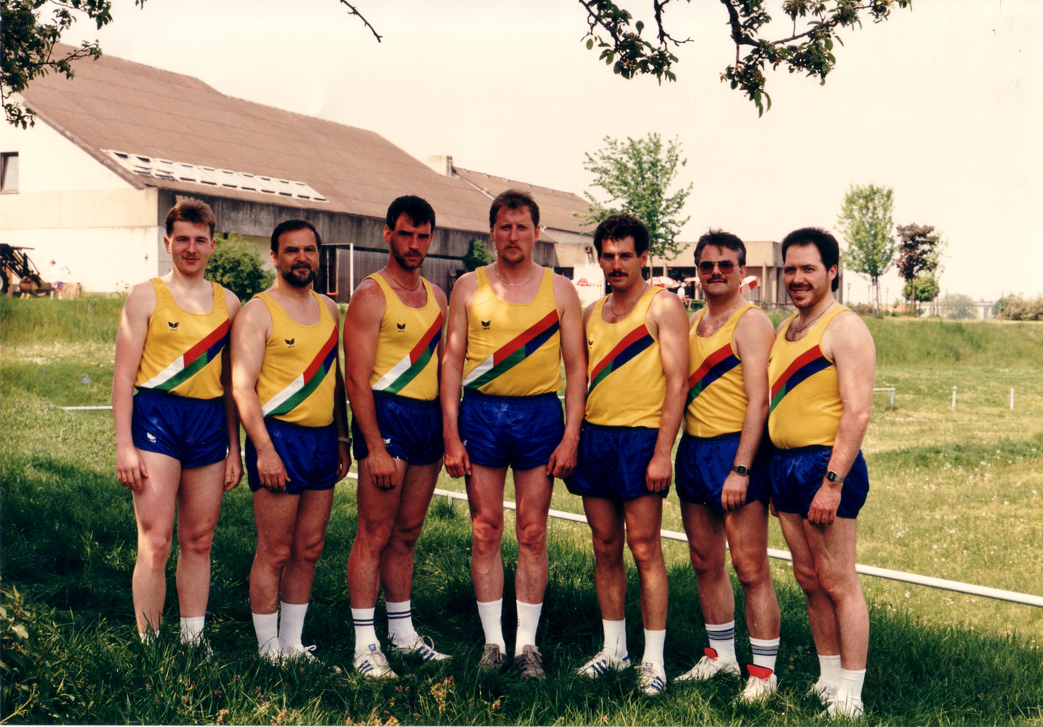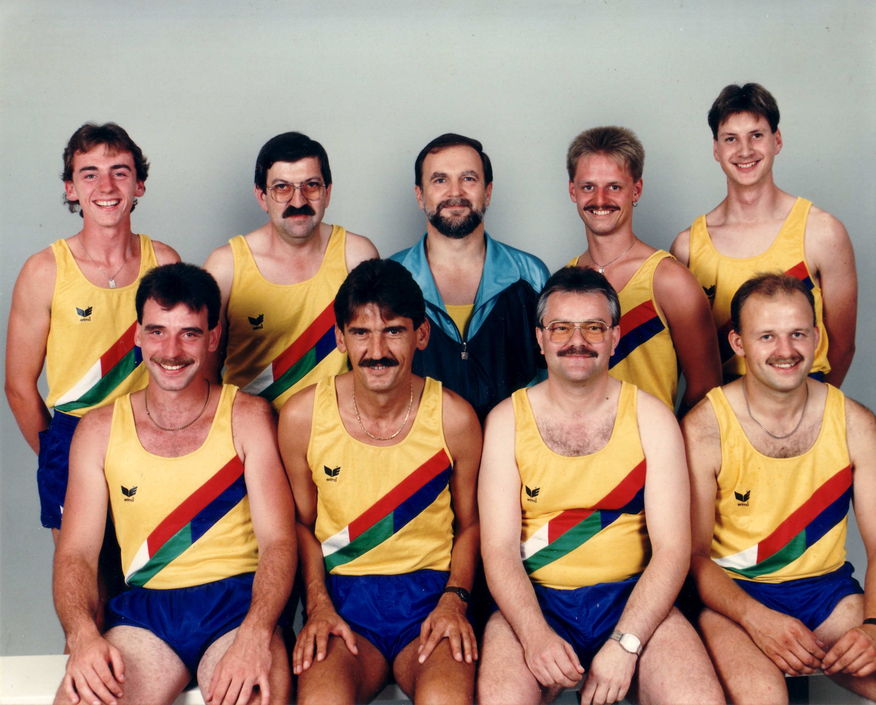 Willi Rödig (Sportwart) Frank Laas Sven Kalig Stefan Gierl Detlef Ludwig Peter Handel vordere Reihe von links: Reinhold Jakob Reinhard Kohlruß Walter Hasenfratz Dieter Jakob |