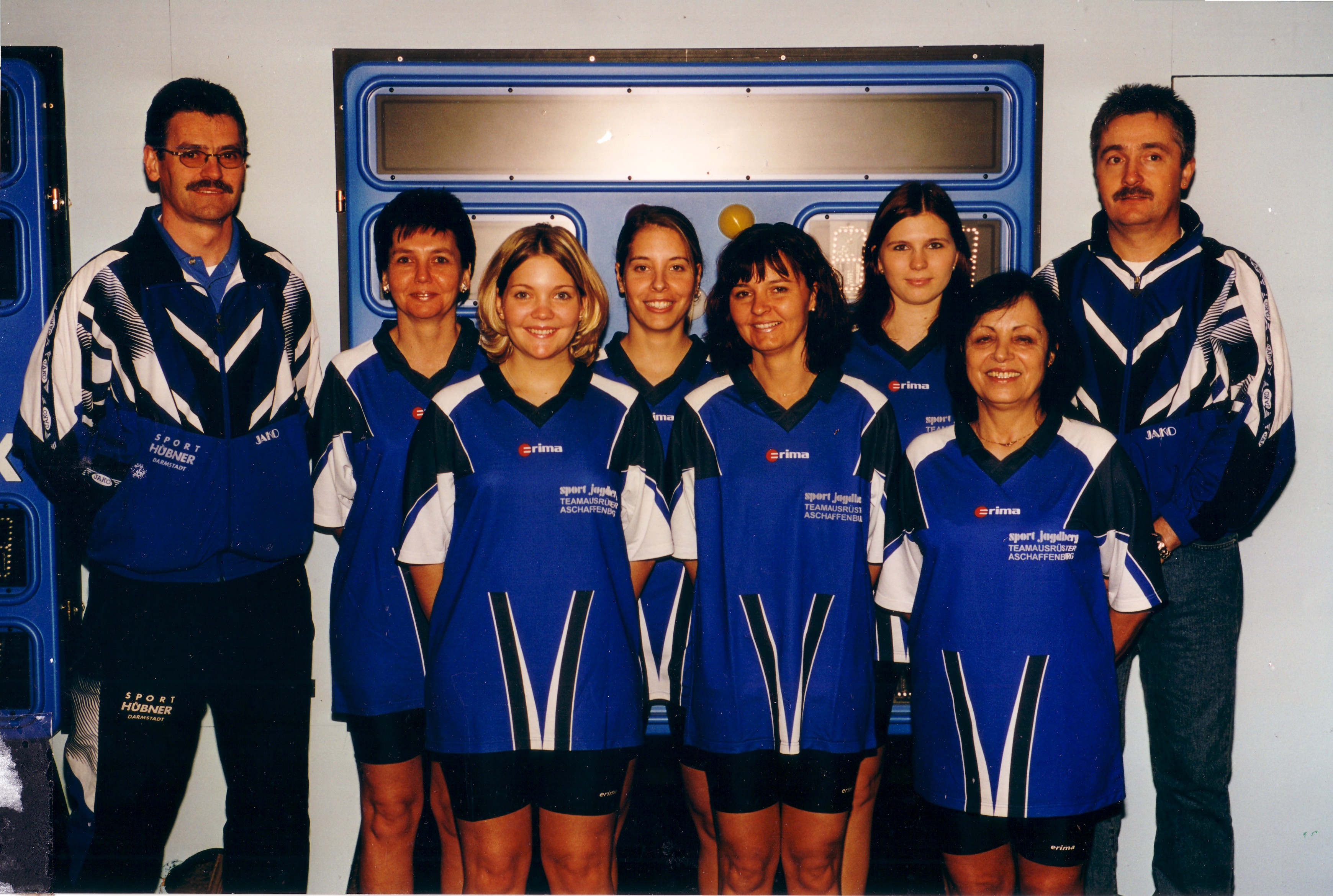 Stefan Wozniczka (Trainer) Melanie Rohrmeier Nina Petermann Sabina Dill Rüdiger Pilzweger (Abteilungsleiter) vordere Reihe von links: Martina Raab Yvonne Gierl Jasmin Zahradnik Karin Pilzweger |